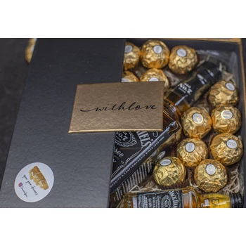 1 üveg 0,5L Jack Daniel's mini, 2 üveg Jack Daniel's mini, Ferrero Rocher A doboz fehér és arany színű, LuxBox típusú. Minden csomagot egyedileg készítünk, a megrendelés beérkezése után, ezáltal friss alapanyagot használunk. Csomagjaink szavatossága vásárlástól számított legalább 3 hónap. Vállalunk kiszállítást, ennek módja, ára, időtartam a Szállítás és fizetés menüpontra kattintva érhető el. Budapesten belül lehetőséged van személyesen átvenni a megrendelt terméket, akár még ma. Nyáron illetve tartós nagy melegben nem tudjuk csomagautomatába küldeni a csomagokat. Ha nagyon gyorsan, akár most van szükséged a csomagra válaszd ki az EXPRESS szállítást. Kérdés esetén írj nekünk a chaten vagy hívj fel minket telefonon, rövid időn belül tudunk segíteni. |