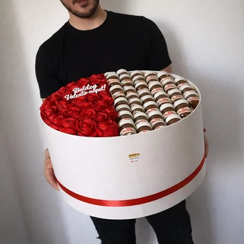 A doboz mérete kb 34 cm. Fele piros örökrózsa, fele mini Nutella.